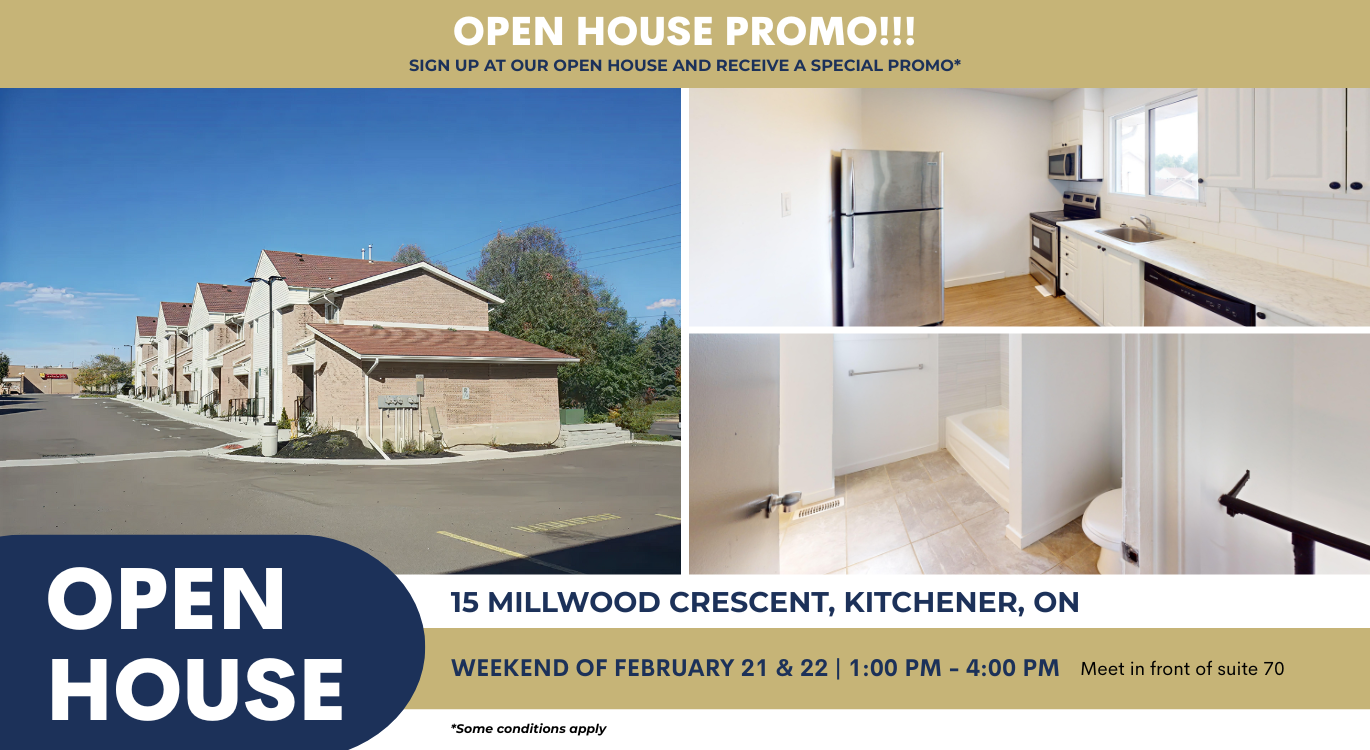 OPEN HOUSE! Come visit us during our open house on February 21st & 22nd between 1pm to 4pm and receive:2 Months' Rent Free -- when you complete an application during our open house.Welcome to 15 Millwood Crescent, an inviting apartment community located in a quiet residential pocket of Kitchener. The property offers modern one and two bedroom suites designed for comfortable everyday living, each featuring vinyl plank flooring and stainless steel appliances.Enjoy the convenience of nearby local shopping, cafes, and dining options just minutes from your door, along with access to neighbourhood parks and green spaces ideal for walking, fresh air, or time outdoors.With easy access to public transit and major routes, getting around the city is simple and stress-free. Offering a balance of peaceful surroundings and everyday convenience, 15 Millwood Crescent is a place you will be proud to call home. To book a viewing, contact rentals@pier4residential.com or call 416-568-1658 today. Your new home awaits at 15 Millwood Crescent!